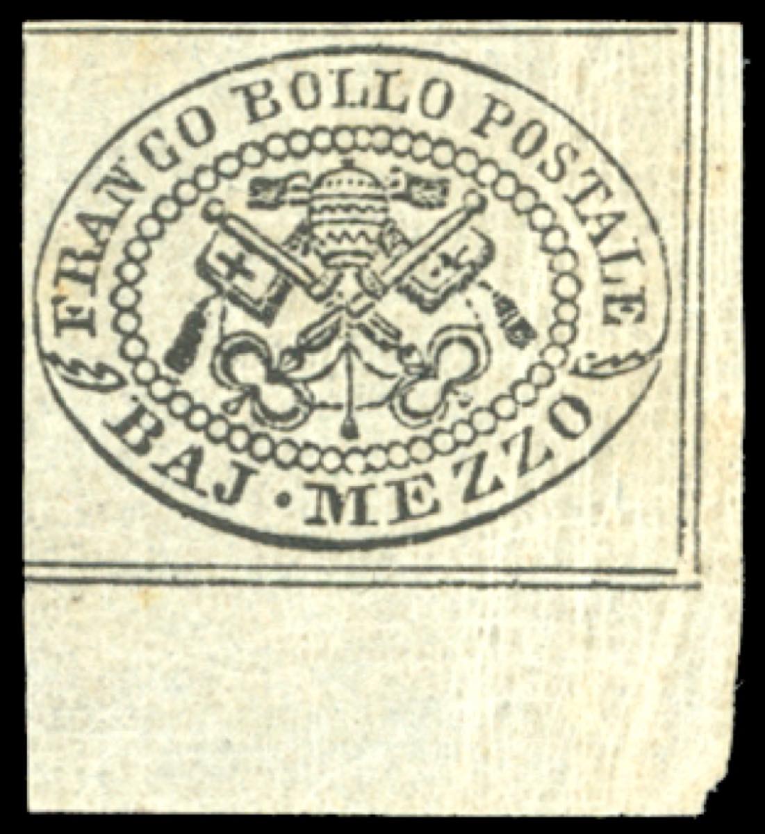 1852 - 1/2 baj grigio (1), angolo di foglio, gomma originale, perfetto. Emilio Diena, Ferrario.