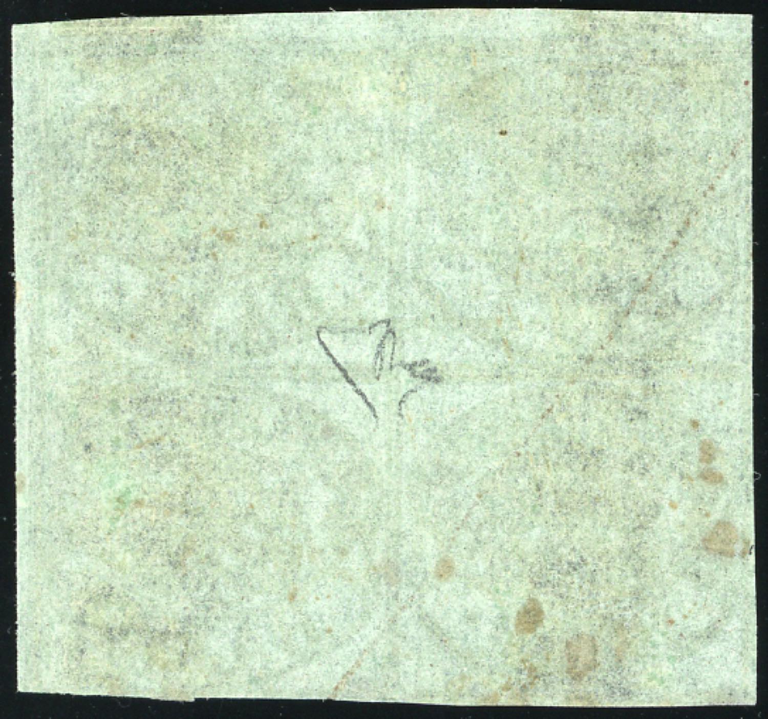 Lot 385 - 1854 - 1 baj verde grigiastro, inchiostro grigio oleoso ...