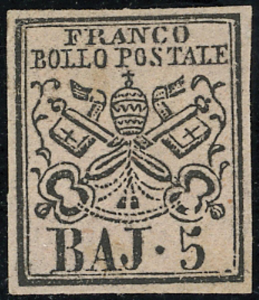 1852 - 5 baj rosa chiaro (6), nuovo, gomma originale, perfetto. Bello. Ferrario.