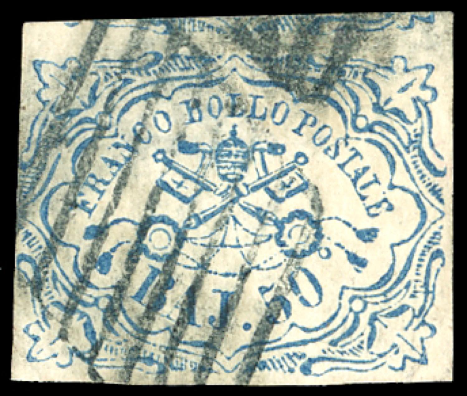 Lot 446 - 1852 - 50 baj azzurro (10), tre ampi margini, leggermente ...