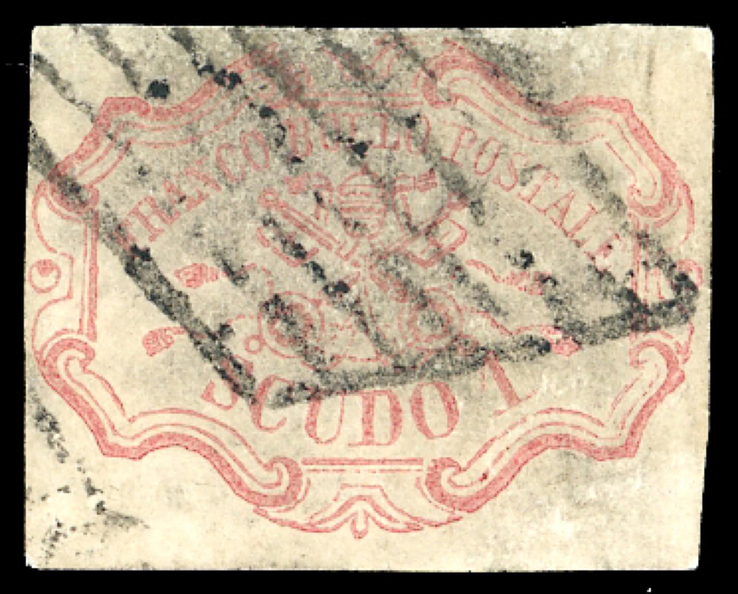 1852- 1 scudo rosa carminio (11), usato, riparato in alto, ottimi margini. Cert.Avi.