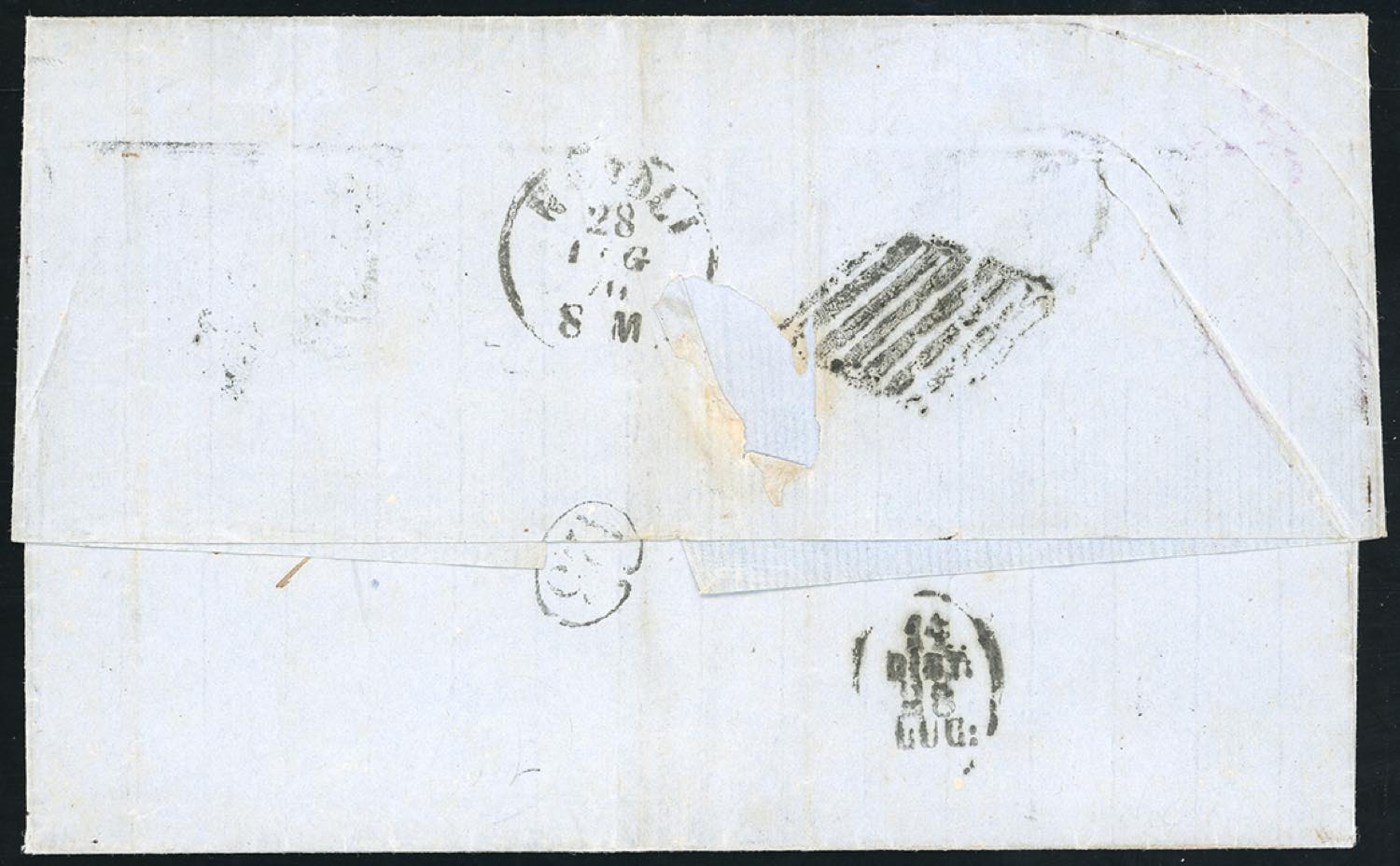 1870 - 40 cent. giallo limone (29), coppia con dentellatura verticale fortemente spostata a destra, su lettera scritta a Marsiglia ed ... Read more