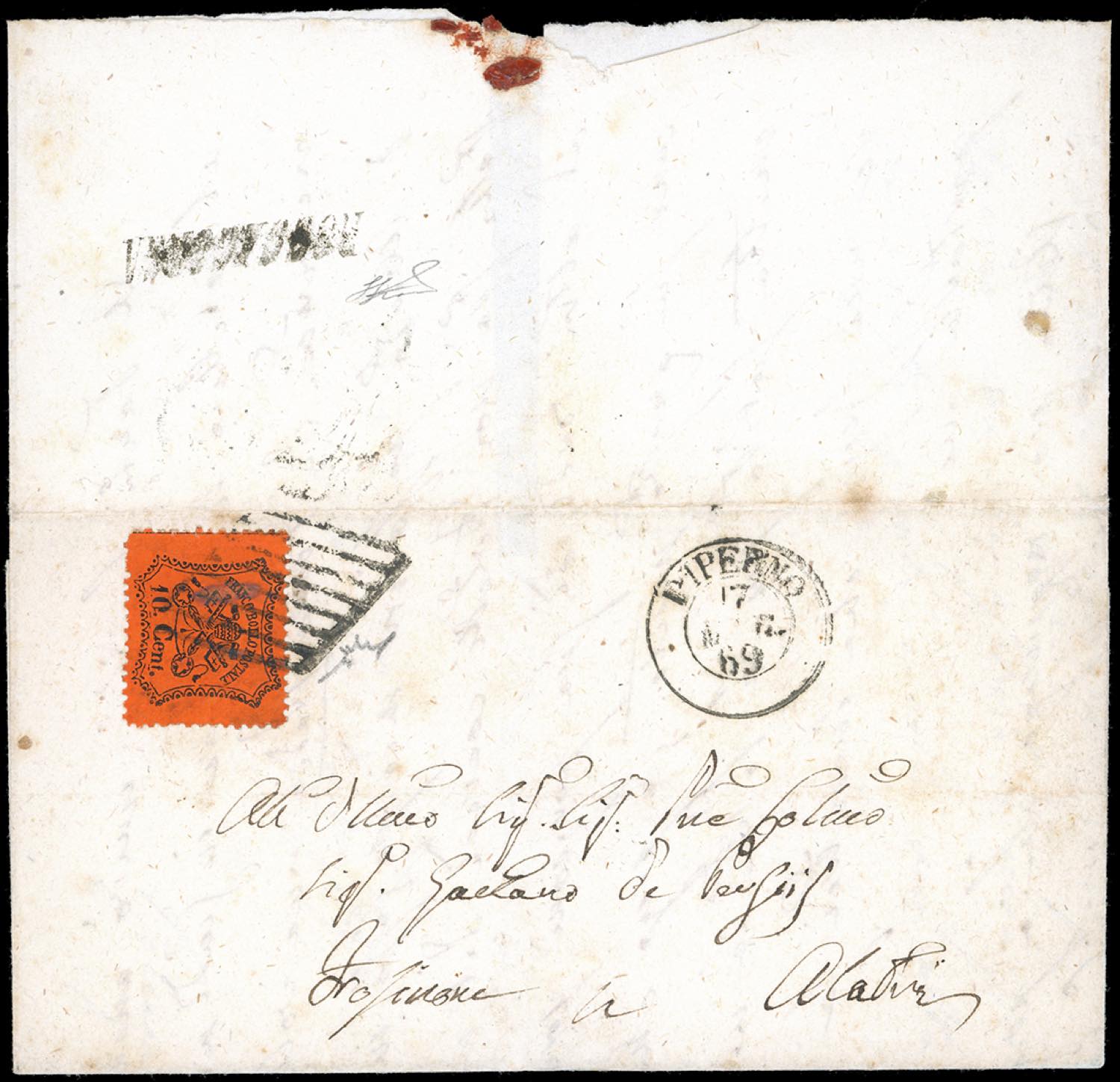 ROCCAGORGA, SI punti R1 - 10 cent. (26), perfetto, su lettera per Alatri, transito di Piperno sul fronte del 17/3/1869. Rara. Chiavarello, ... Read more