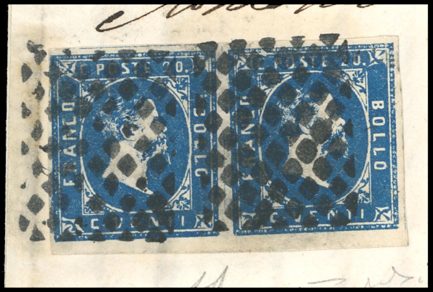 Lot 620 - 1851 - 20 cent. azzurro scuro, I tiratura (2c), coppia ...
