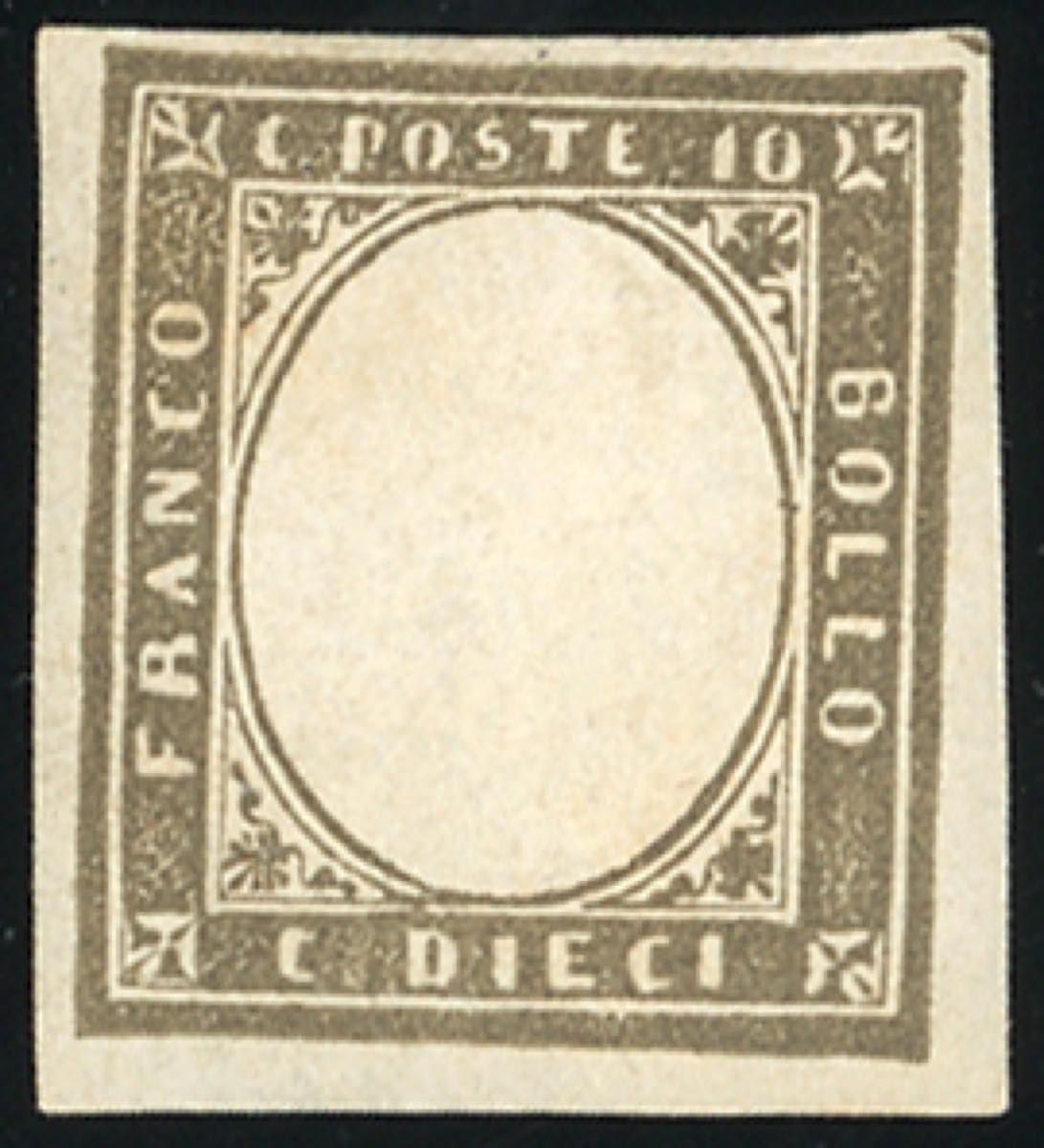 Lot 674 - 1861 - 10 cent. grigio olivastro scuro, senza effigie ...