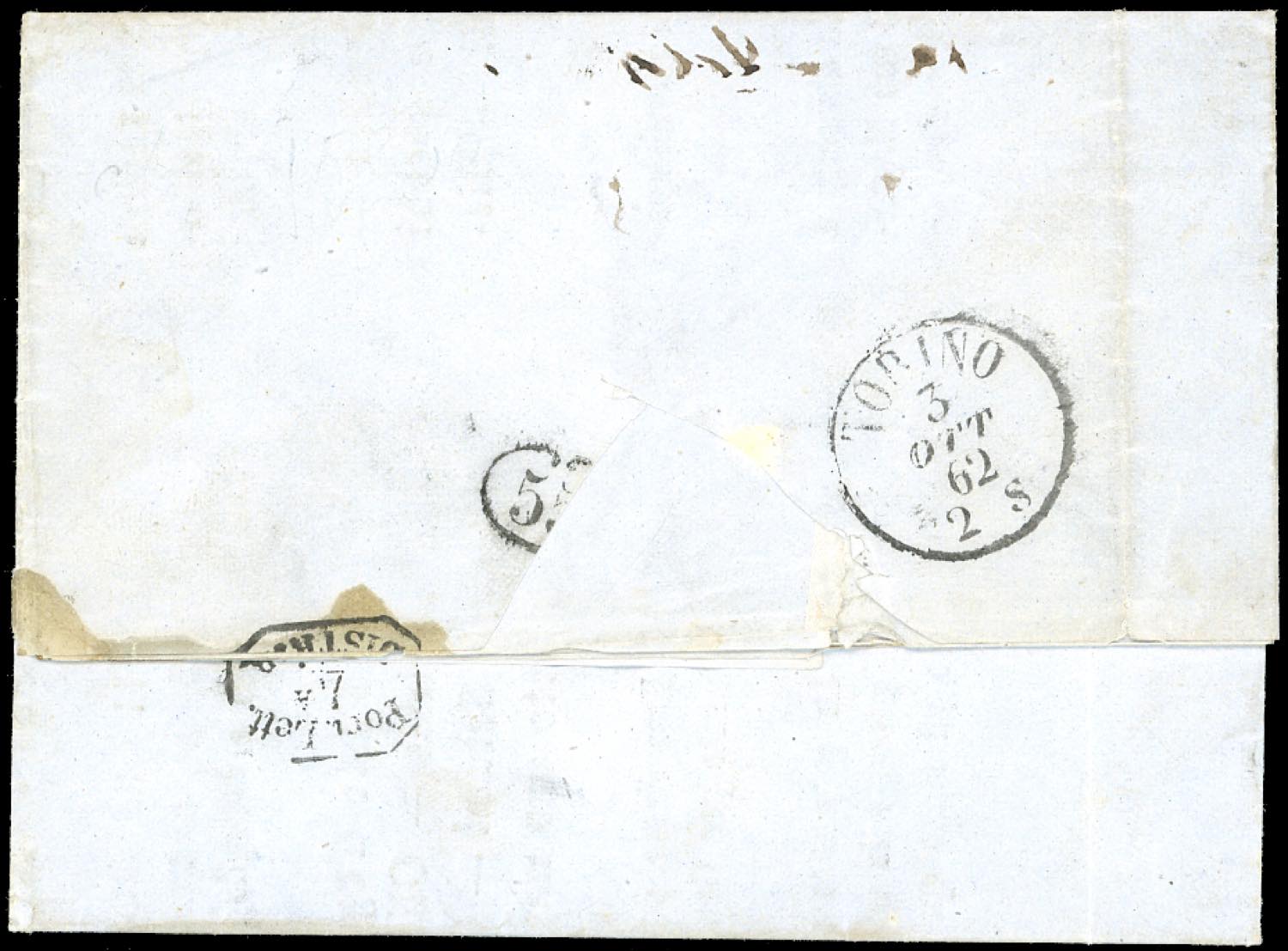 1862 - 10 cent. bruno rossastro (14Cn), tre ottimi margini, giusto a destra, isolato su circolare a stampa da Torino 3/10/1862 per città. Raro insieme. Colla. Ex coll. Hess.