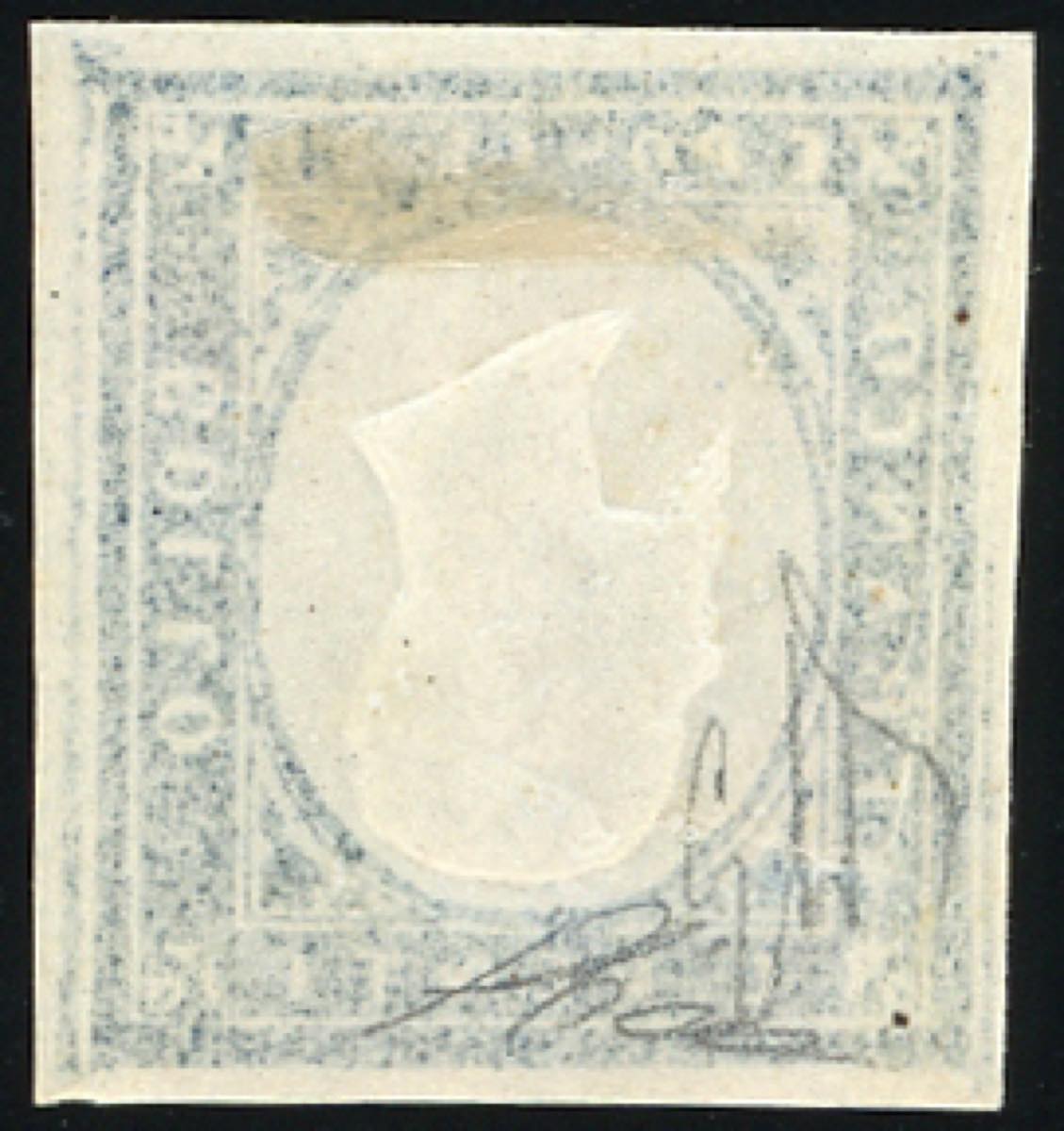 Lot 699 - 1860 - 20 cent. azzurro scurissimo, effigie capovolta ...