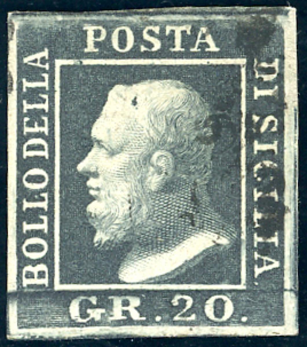 Lot 861 - 1859 - 20 grana ardesia scuro (13c), usato, perfetto. ...