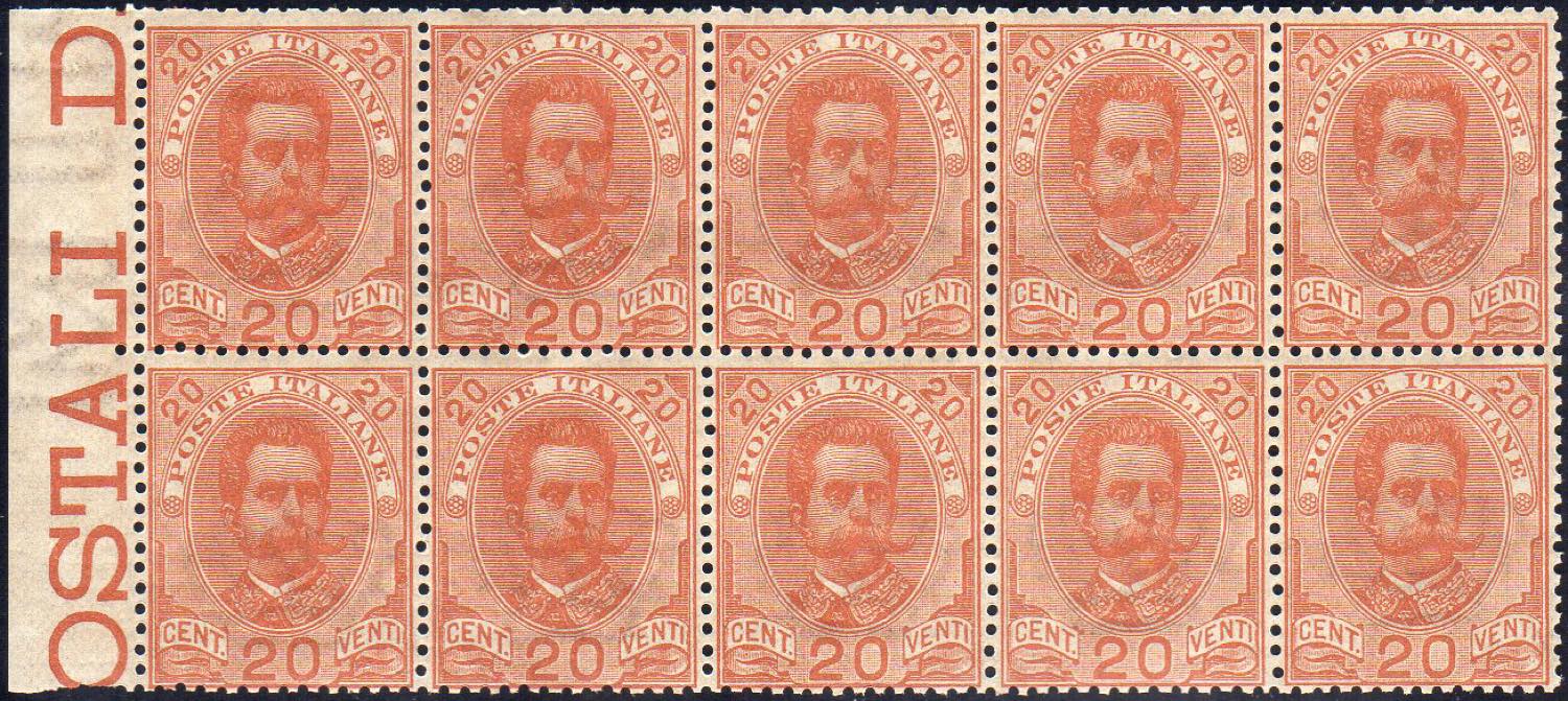 Lot 1175 - 1895 - 20 cent. Umberto I (61), blocco di 10 bordo di ...