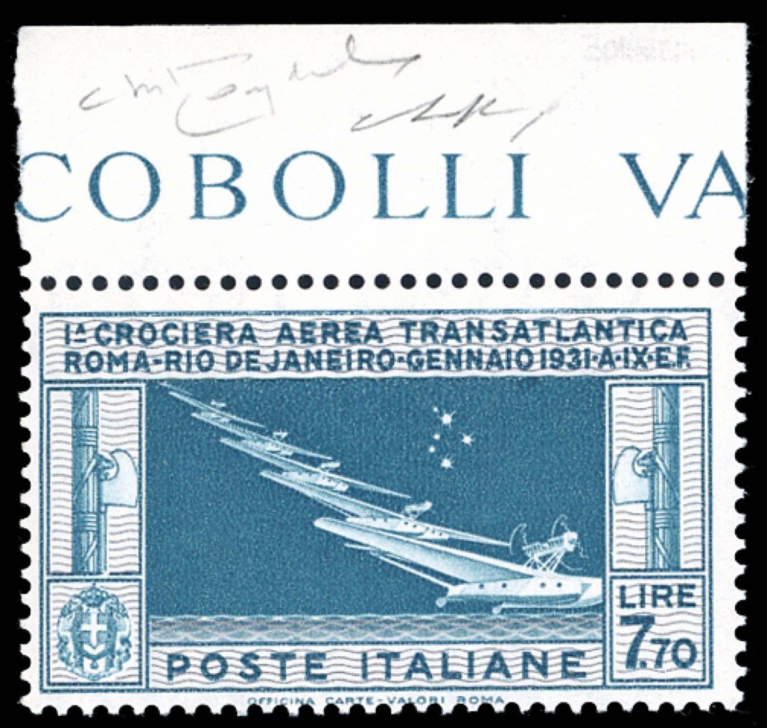 1930 - 7,70 lire Crociera Balbo (25), bordo di foglio, gomma originale integra, perfetto. G. e A.Bolaffi, Raybaudi, cert. Ferrario.