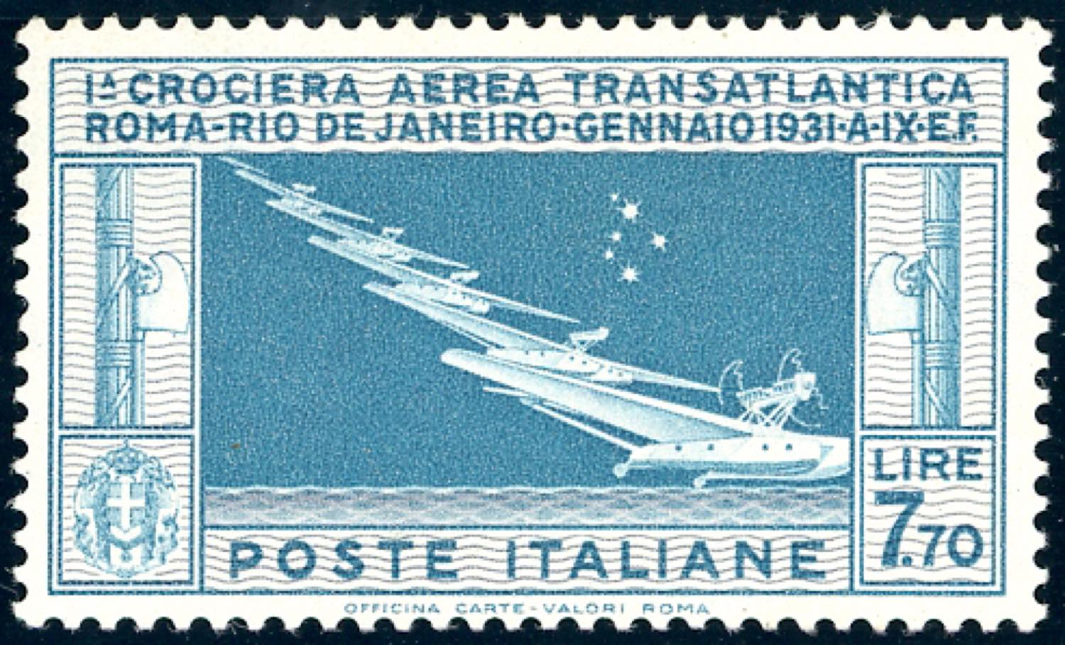 1930 - 7,70 lire Crociera Balbo (25), gomma originale integra, perfetto. Wolf.