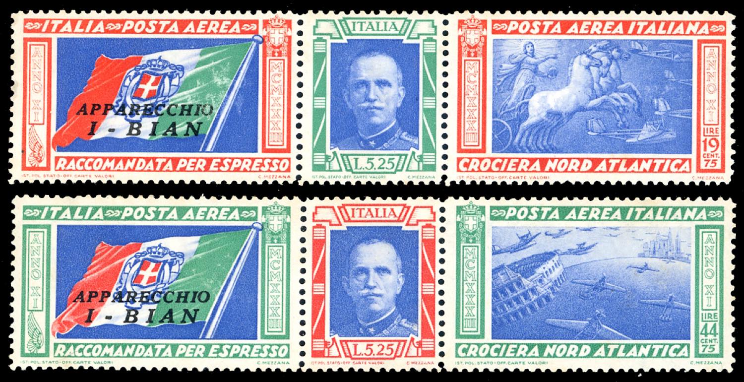 1933 - Trittici I-BIAN (51B/52B), nuovi, gomma originale, lieve traccia di linguella, perfetti. Ferrario.