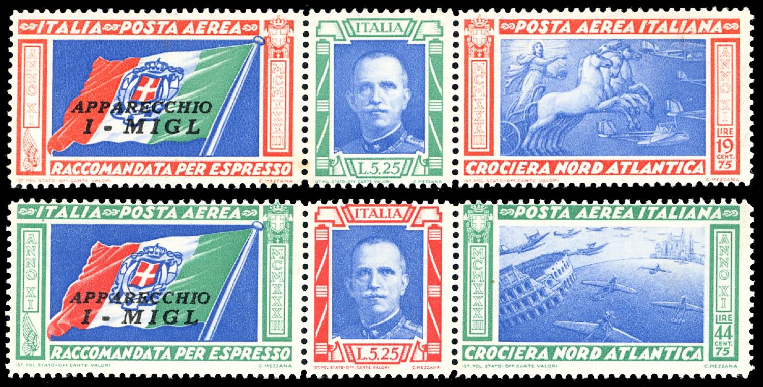 1933 - Trittici I-MIGL (51K/52K), gomma originale, qualche minimo punto di ossidazione al verso.