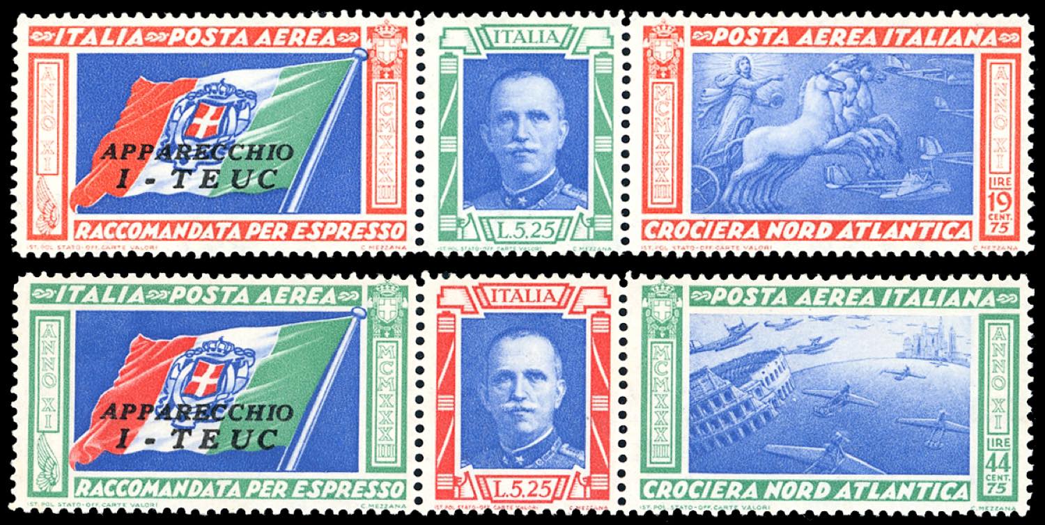 1933 - Trittici I-TEUC (51S/52S), gomma orginale integra, perfetti. Cert. Ferrario.