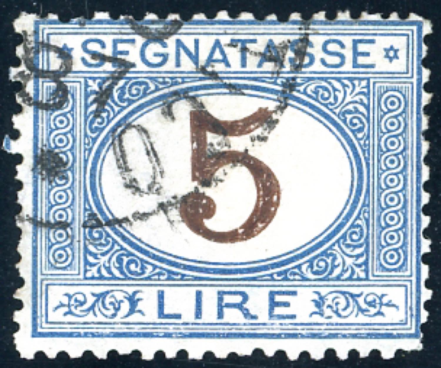1874 - 5 lire azzurro e bruno, doppia stampa della cifra (13c), usato, perfetto. A.Diena, cert. E.Diena.