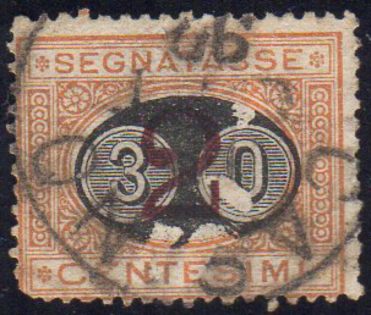 1890 - 30 cent. su 2 cent. Mascherine, soprastampa parzialmente mancante (19), usato, un angolo arrotondato.
