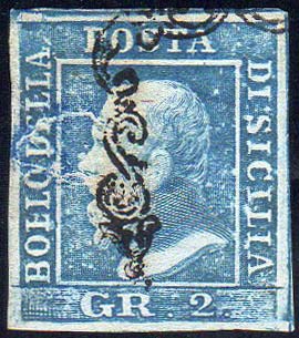 Lot 792 - 1859 - 2 grana azzurro, I tavola, carta di Palermo, ritocco ...