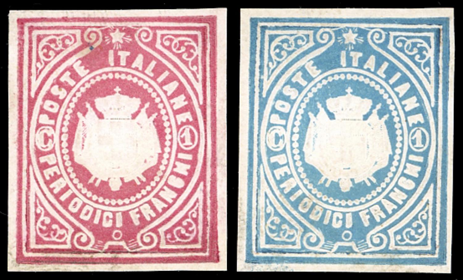 Lot 1640 - 1864 - 1 cent. Stemma periodici franchi, saggi Giuseppe Re ...