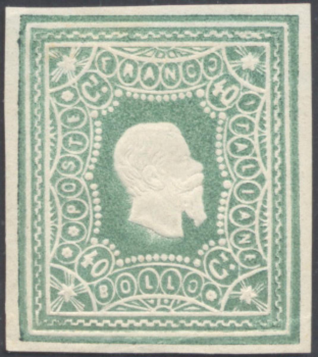 Lot 1649 - 1864 - 40 cent. Saggio Re, stelle angolari, verde (Unif. ...