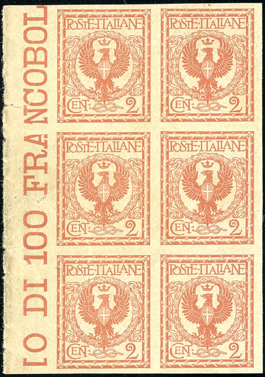 Lot 1656 - 1901 - 2 cent. Floreale (69), blocco di sei prove di ...