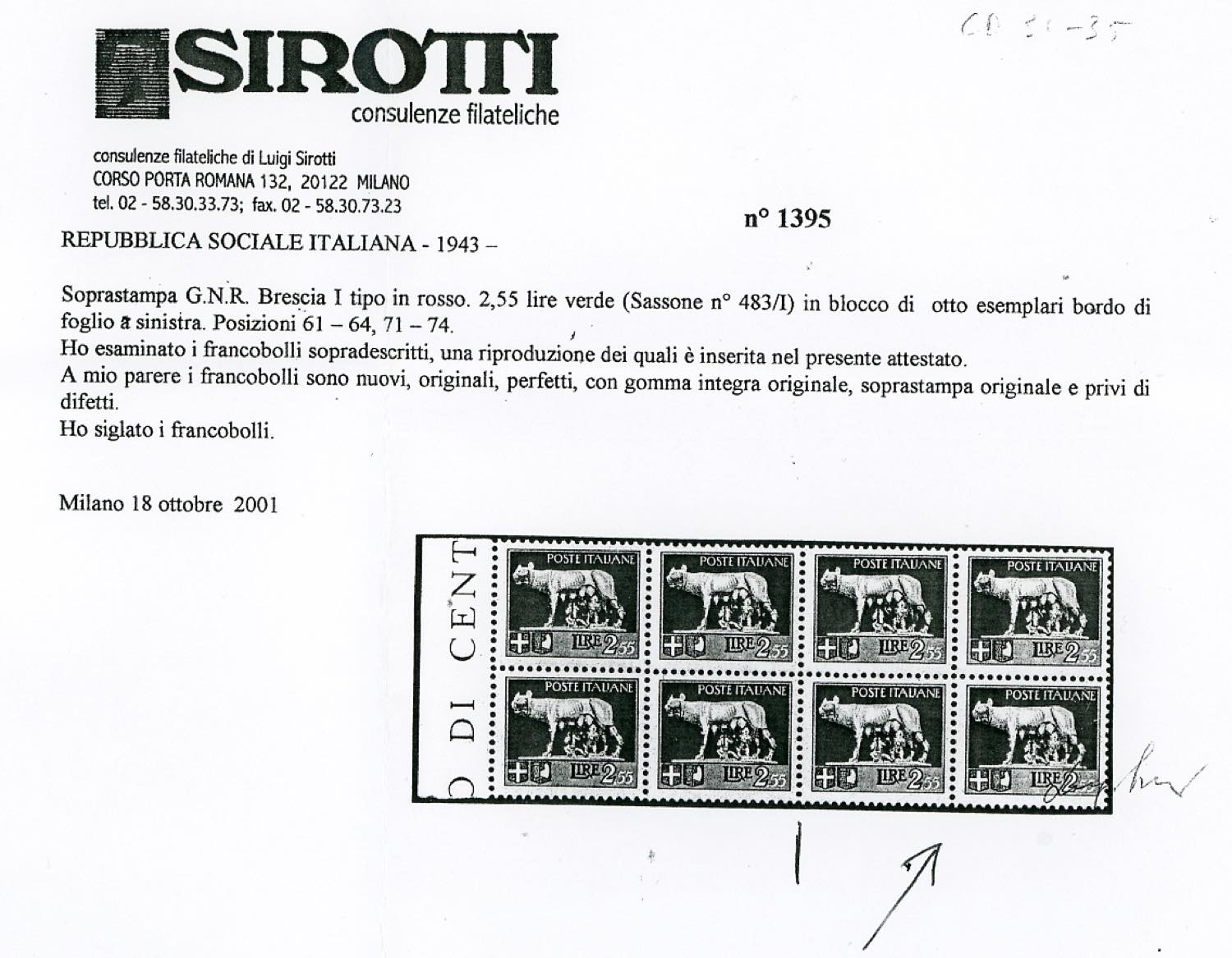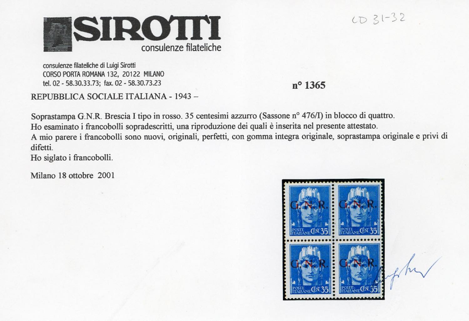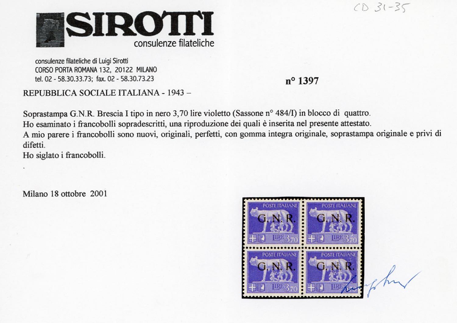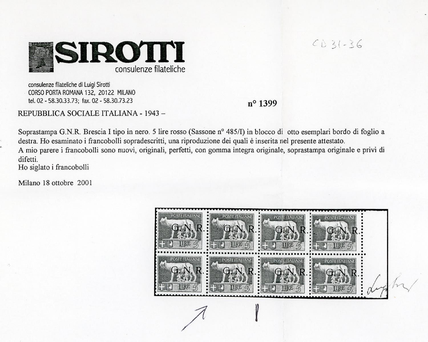 Lot 1675 - 1943 - Soprastampati G.N.R., tiratura di Brescia, I tipo, ...