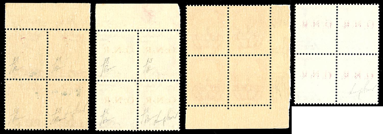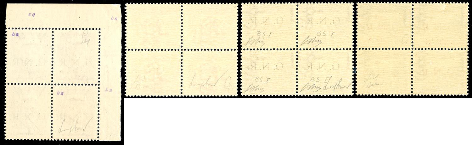 1943 - Soprastampati G.N.R., tiratura di Brescia, I tipo, serietta di 16 valori (470/I-480/I,482/I-486/I), blocchi di quattro, diversi ... Read more