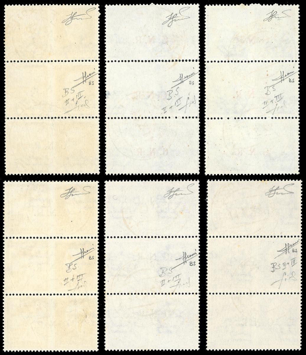 1943 - I sei trittici verticali, con le rispettive soprastampe: G.N.R. del II tipo, G.N.R. del II e R. del II tipo, G.N.R. del III tipo ... Read more