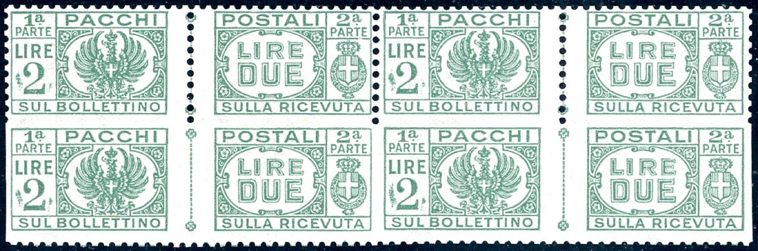 Lot 1787 - PACCHI POSTALI 1946 - 2 lire verde, blocco di quattro ...