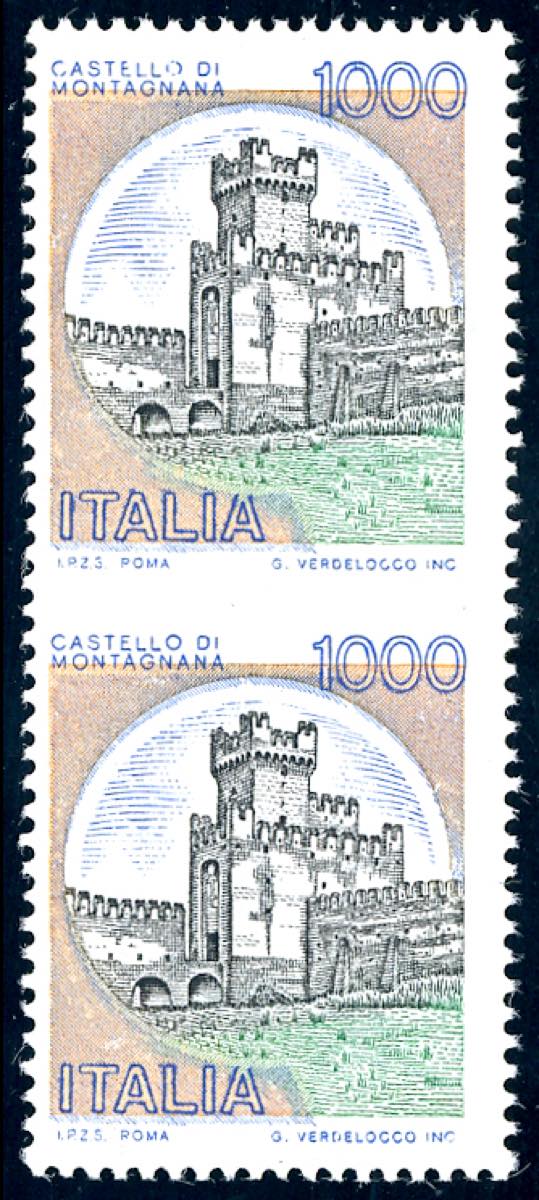 1980 - 1.000 lire Castelli (1527), coppia verticale non dentellata al centro, gomma originale integra, perfetta. Ferrario, R.Diena.