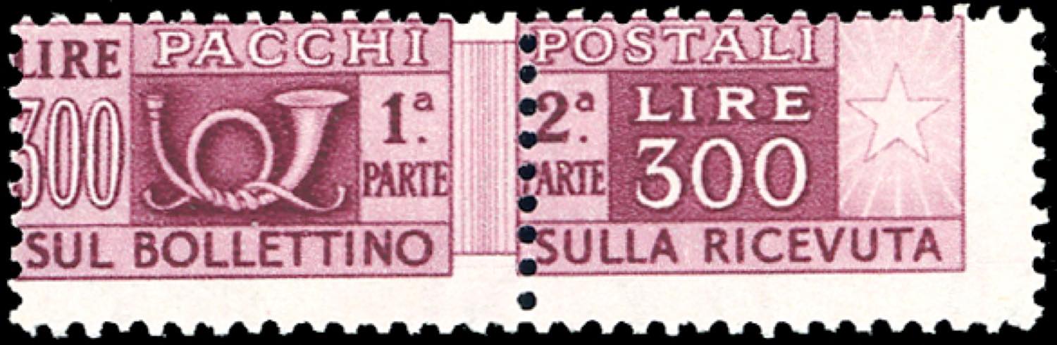 1948 - 300 lire filigrana ruota (79), dentellatura orizzontale e verticale fortemente spostate, gomma originale integra, perfetto. Varietà non catalogata. Raybaudi, Ferrario.