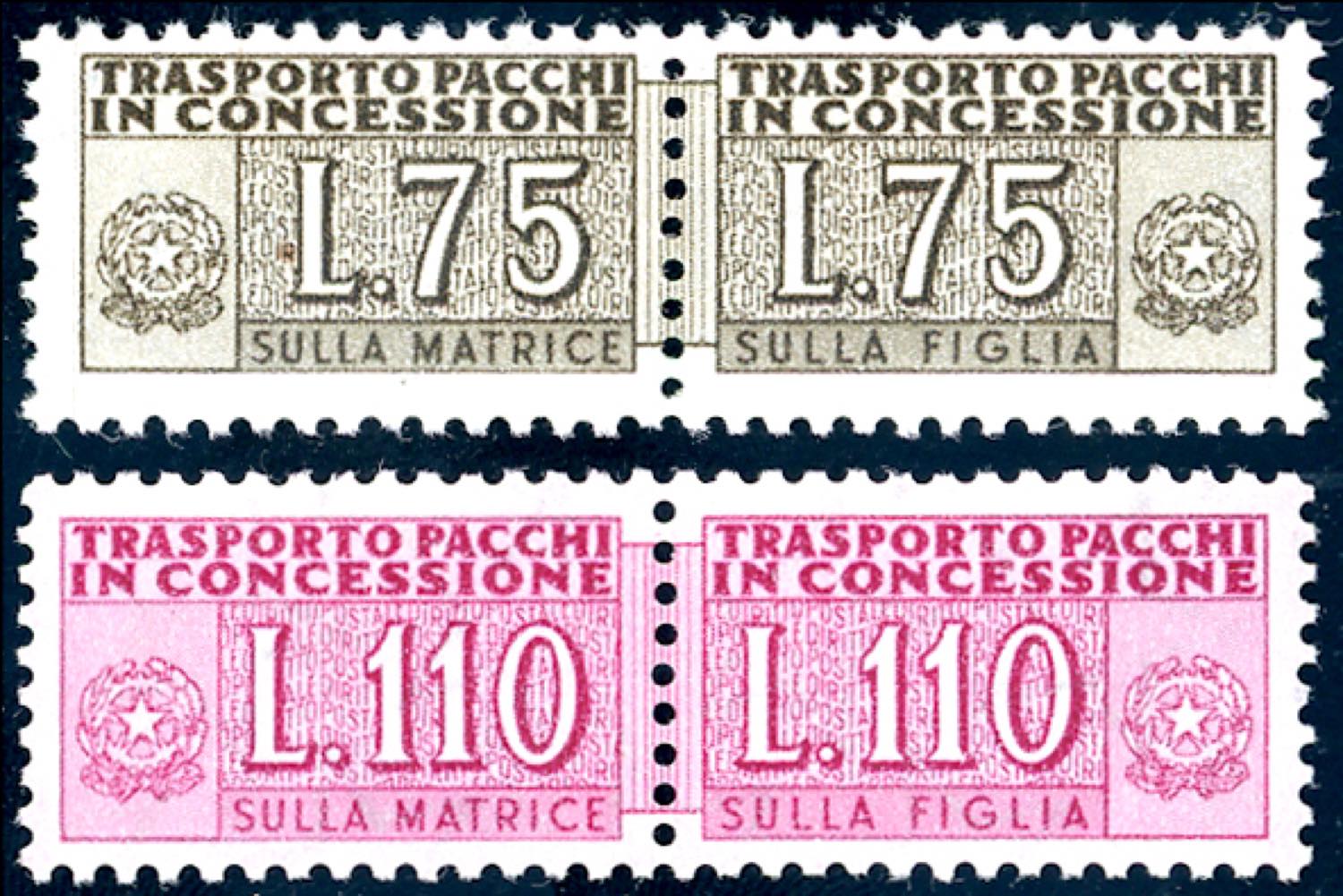 Lot 1923 - 1955 - 75 lire e 110 lire, filigrana stelle (9,12), gomma ...