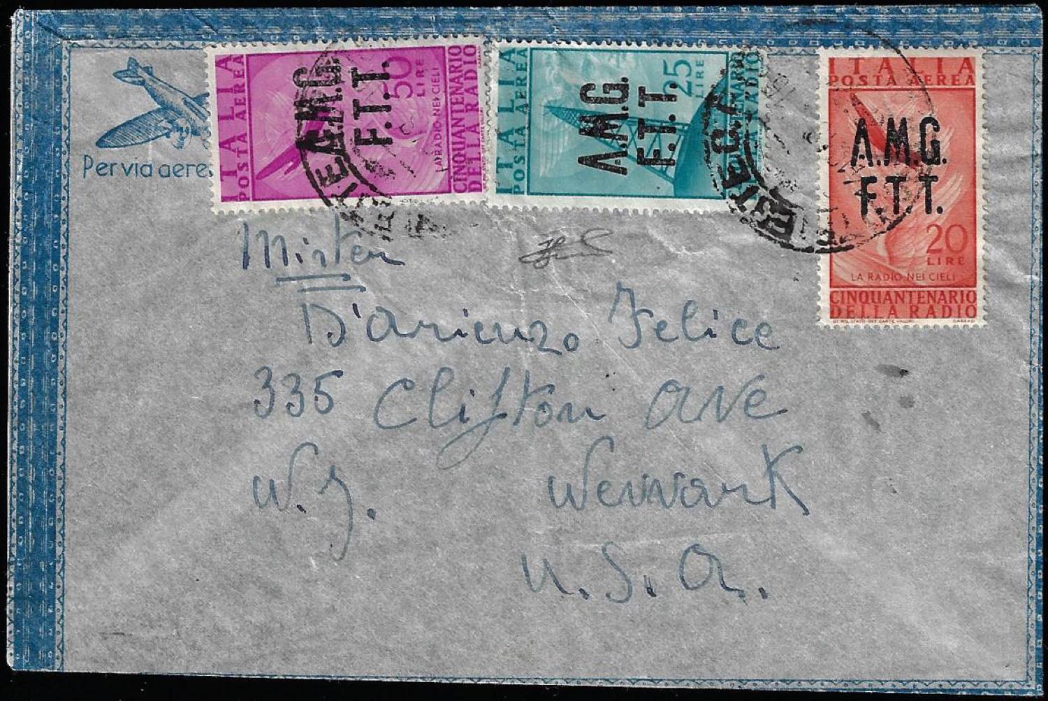 POSTA AEREA 1948 - 20, 25 E 50 lire Radio (9,10,12), perfetti, su aerogramma da Trieste 14/10/1948 per gli Stati Uniti. Non comune ... Read more