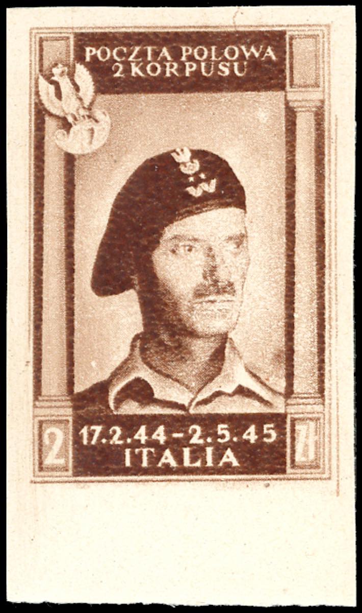 1946 - 2 zl. bruno cioccolato scuro, non dentellato (8Ba), bordo di foglio, senza gomma come sempre, perfetto. Bello. Ferrario.