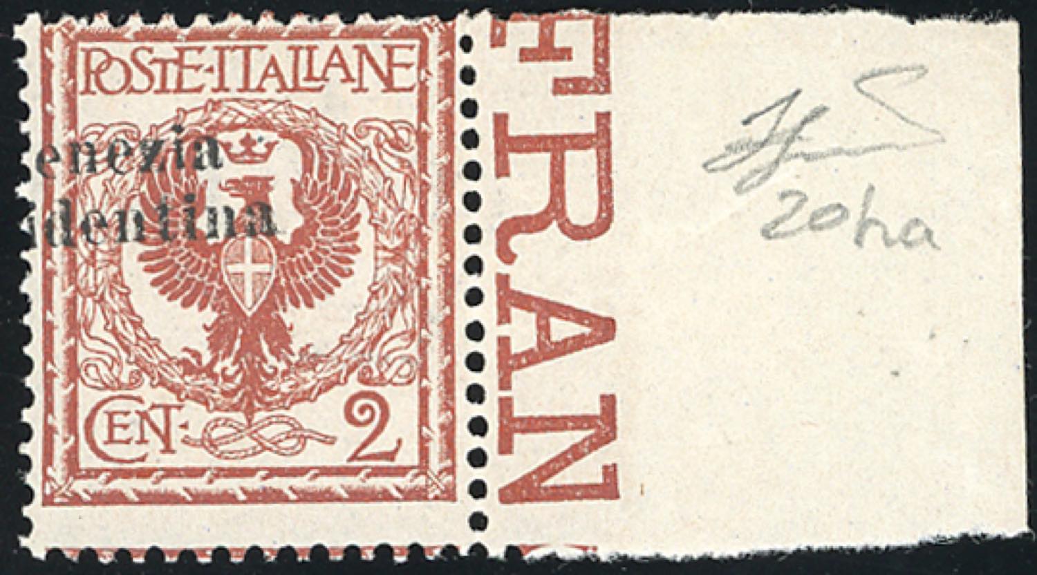 TRENTINO ALTO ADIGE 1918 - 2 cent. Floreale, soprastampa "ENEZIA IDENTINA" non completa, bordo di foglio (20ha), gomma originale integra, ... Read more