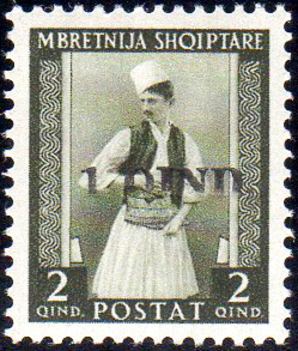 Lot 2130 - ALBANIA 1942 - 1 q. su 2 q. soptastampa incompleta in basso ...