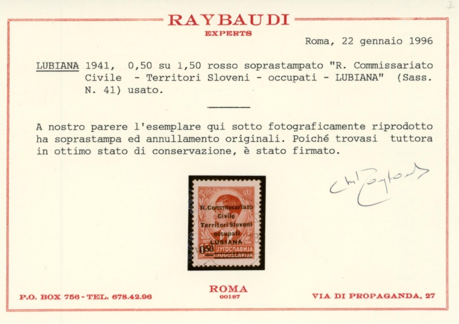 Lot 2137 - LUBIANA 1941 - 0,50 d. su 1,50 d. soprastampato "R. ...