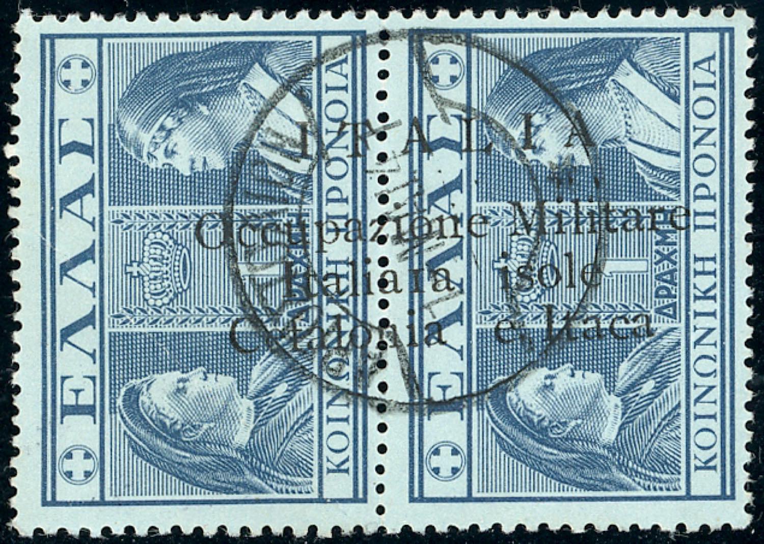 EMISSIONI DI ARGOSTOLI 1941 - 1 d. + 1 d. Previdenza Sociale, varietà "ITALIAIA" al posto di "ITALIANA" (31q), usata, perfetto. Molto ... Read more