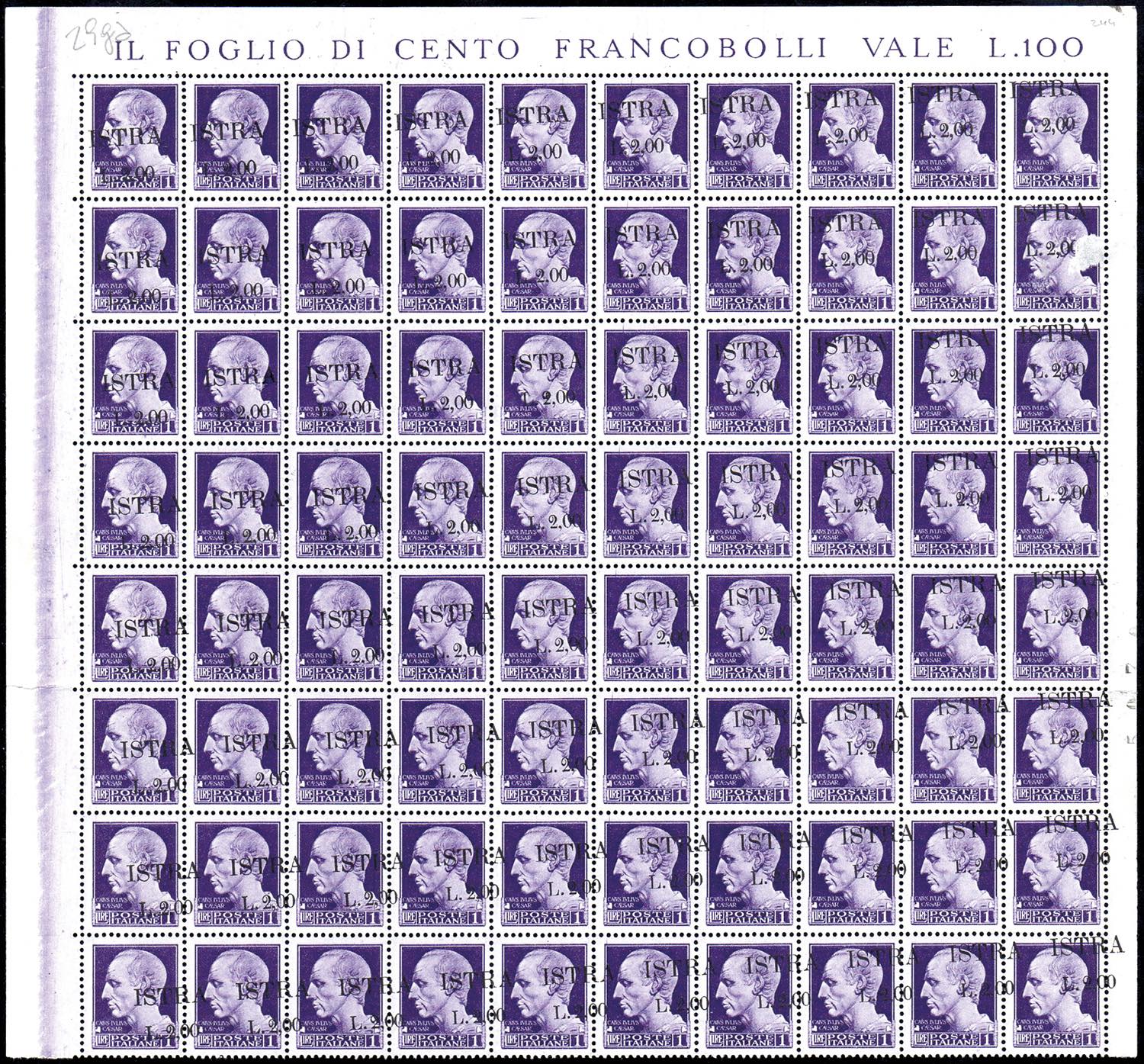 OCCUPAZIONE JUGOSLAVA ISTRIA-LITORALE SLOVENO 1945 - 2 lire su 1 lira, soprastampa obliqua (29ga), blocco di 80 esemplari, gomma integra, ... Read more