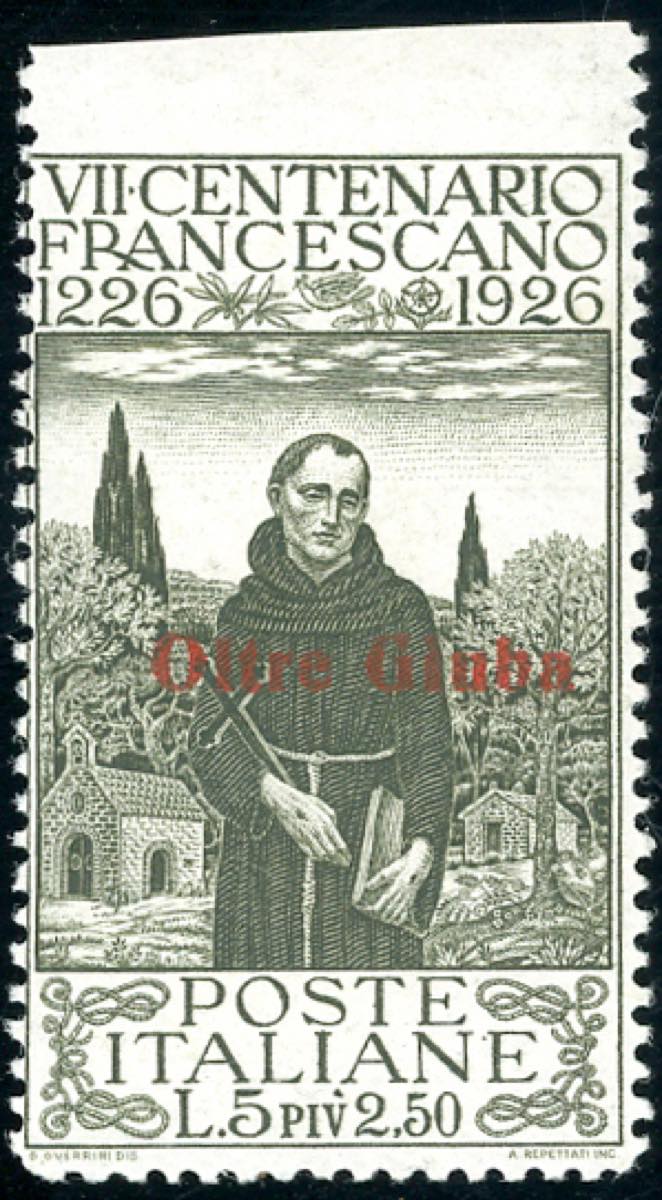 Lot 2568 - 1926 - 5 + 2,50 lire San Francesco, non dentellato in alto ...