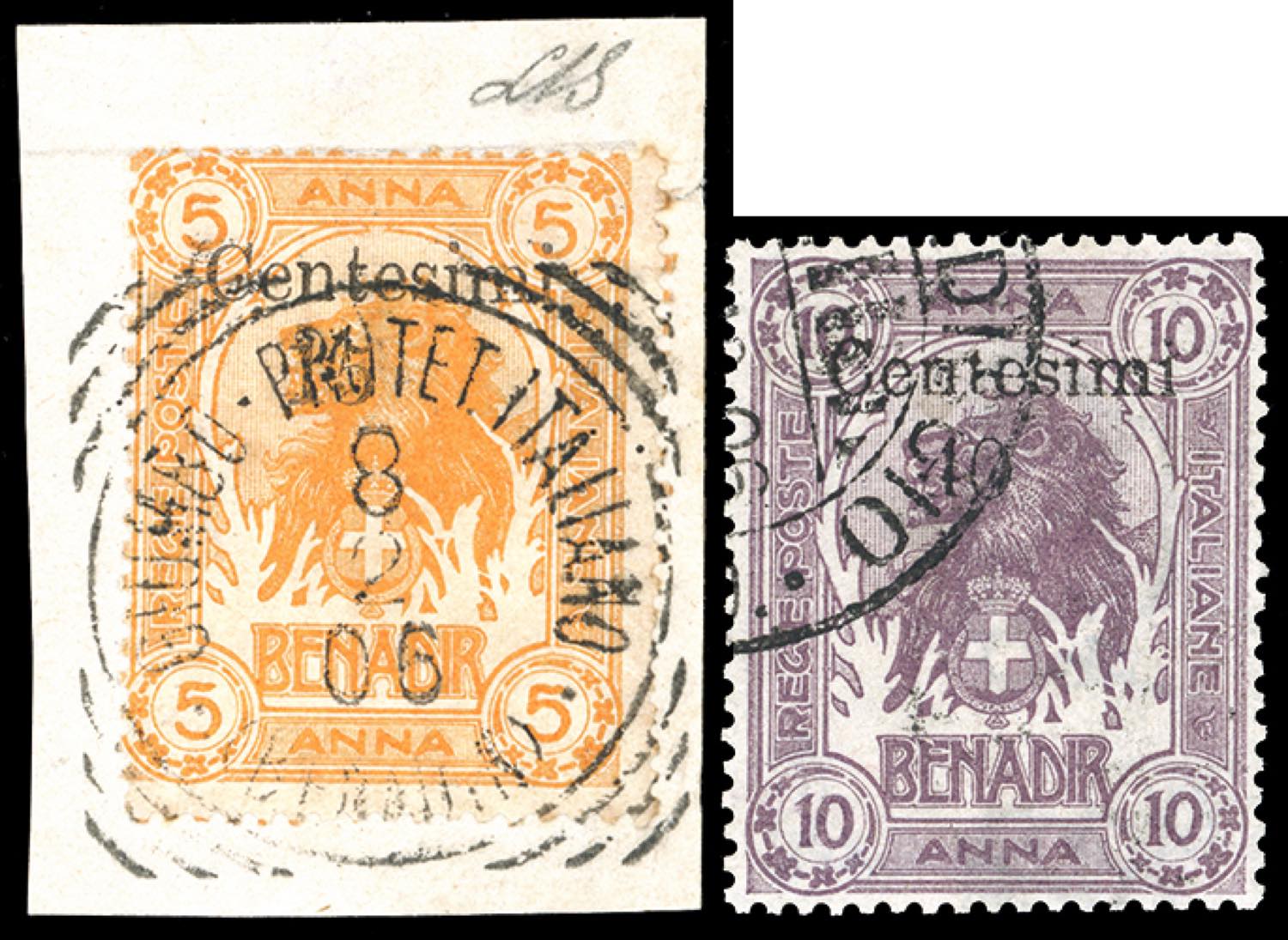 1905 - Soprastampati di Zanzibar, serie completa (8/9), usati, perfetti. Mezzadri per il n. 9, cert. Ferrario per la serie.