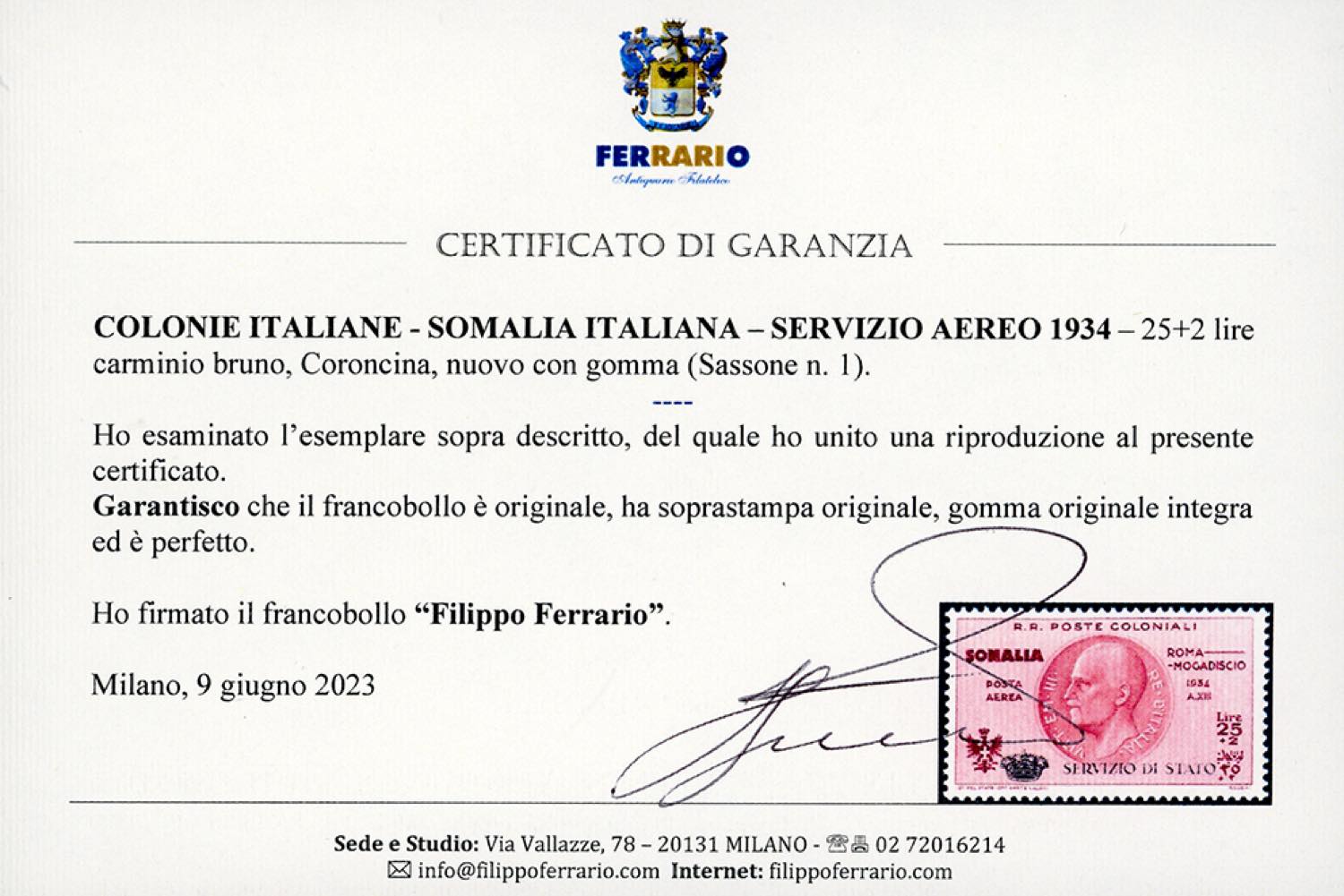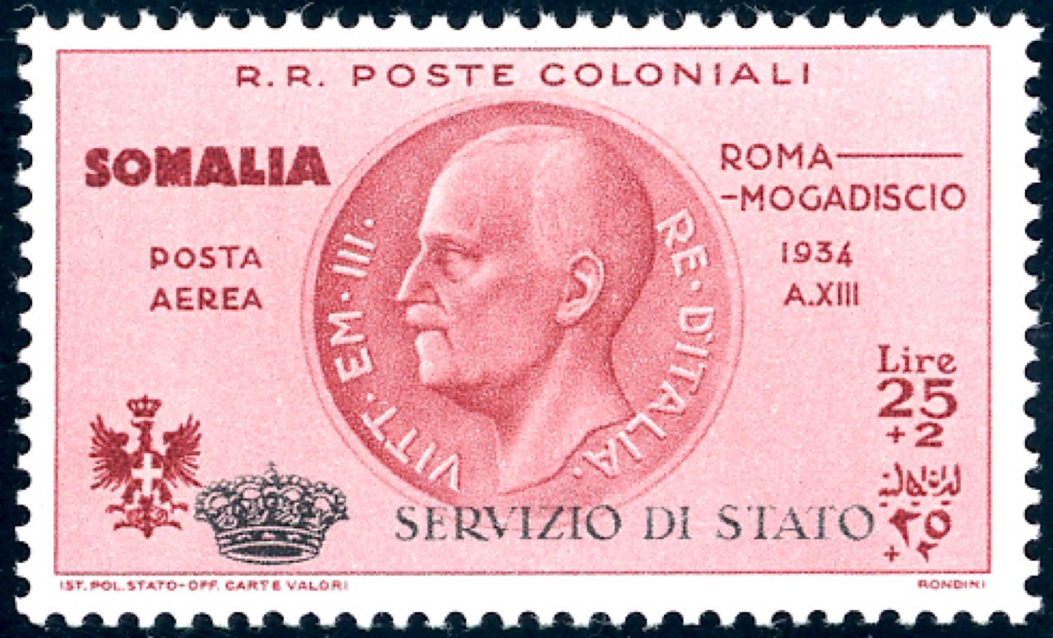 SERVIZIO AEREO 1934 - 25 + 2 lire Coroncina (1), gomma originale integra, perfetto. Splendido per freschezza e centratura. G.Bolaffi, cert. ... Read more