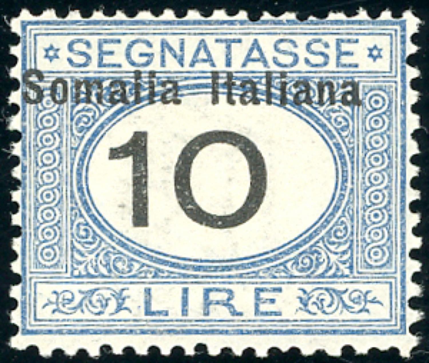 SEGNATASSE 1926 - 10 lire cifre in nero, soprastampa e cifra fortemente spostata a sinistra (51b), gomma integra, perfetto. Raybaudi.