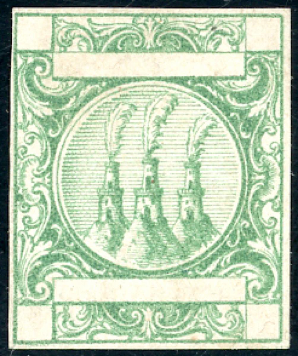 Lot 2726 - 1865 - Saggio Riester in verde, senza diciture e cifre agli ...