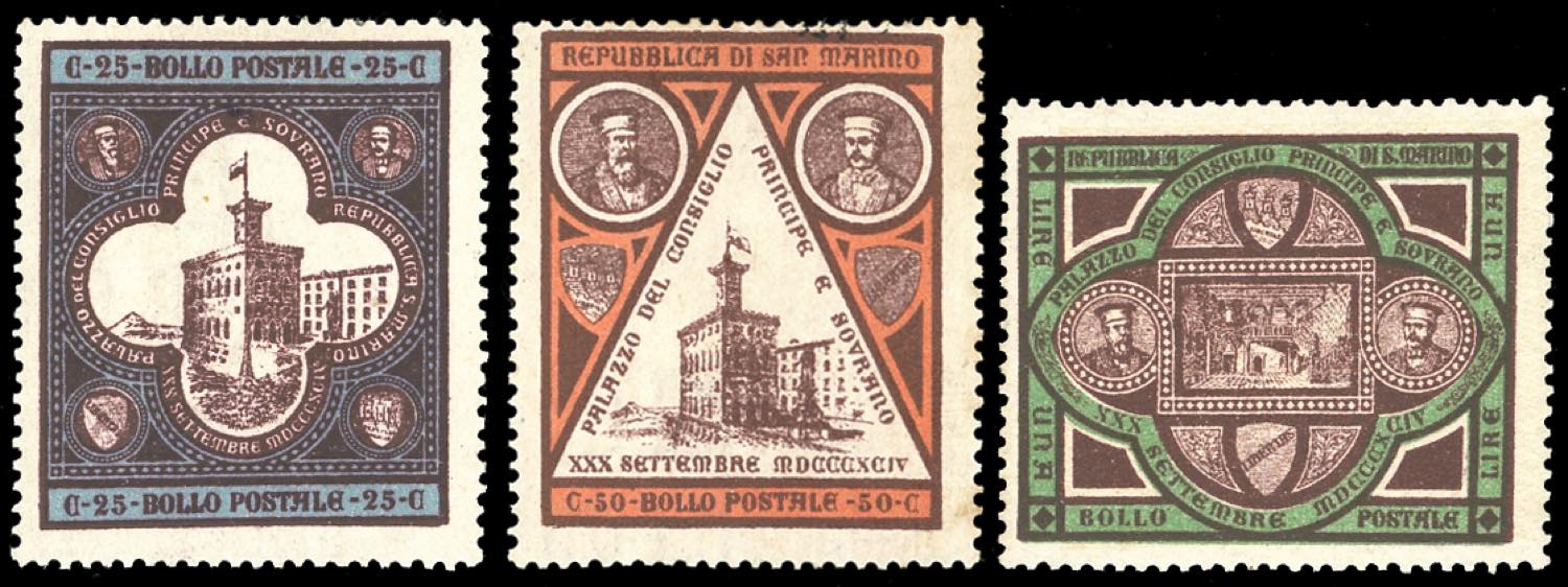 1894 - Palazzo del Governo, serie completa (23/25), discreta centratura, gomma originale integra, perfetti. Ferrario.