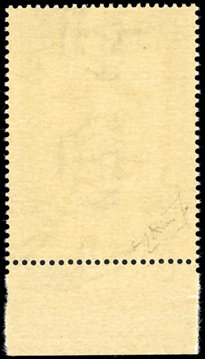 1943 - 5 cent. soprastampa "Governo Provvisorio" di tipo diverso obliqua, sbarrette ripetute anche sul bordo inferiore di foglio (266Ana), ... Read more
