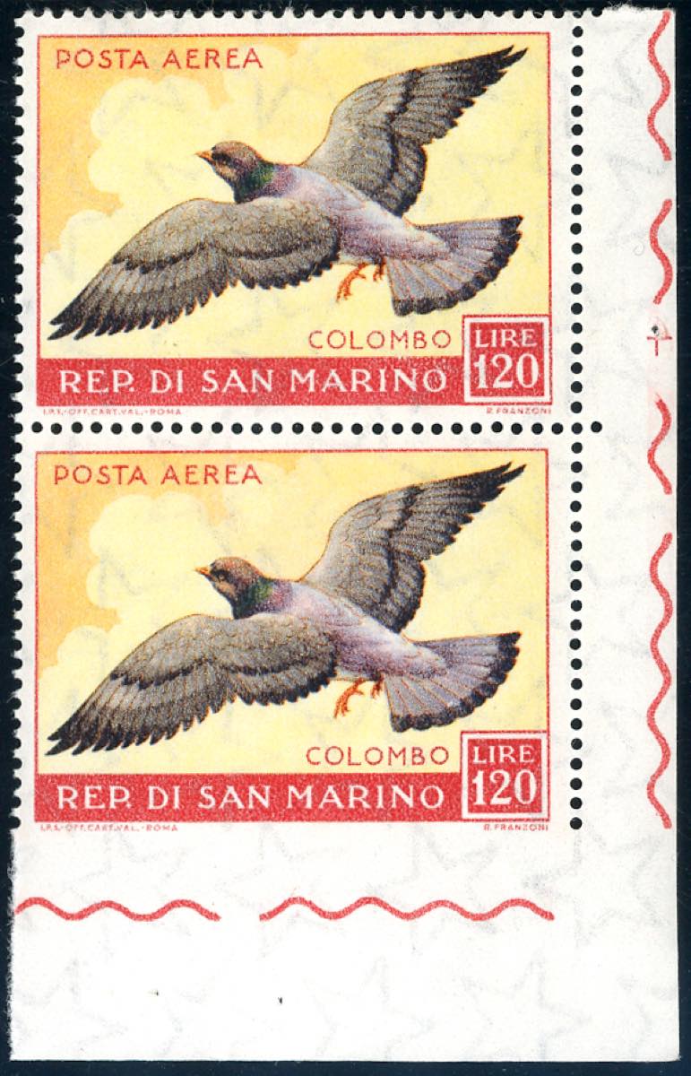 Lot 2928 - 1959 - 120 lire Uccelli, non dentellato in basso, in coppia ...