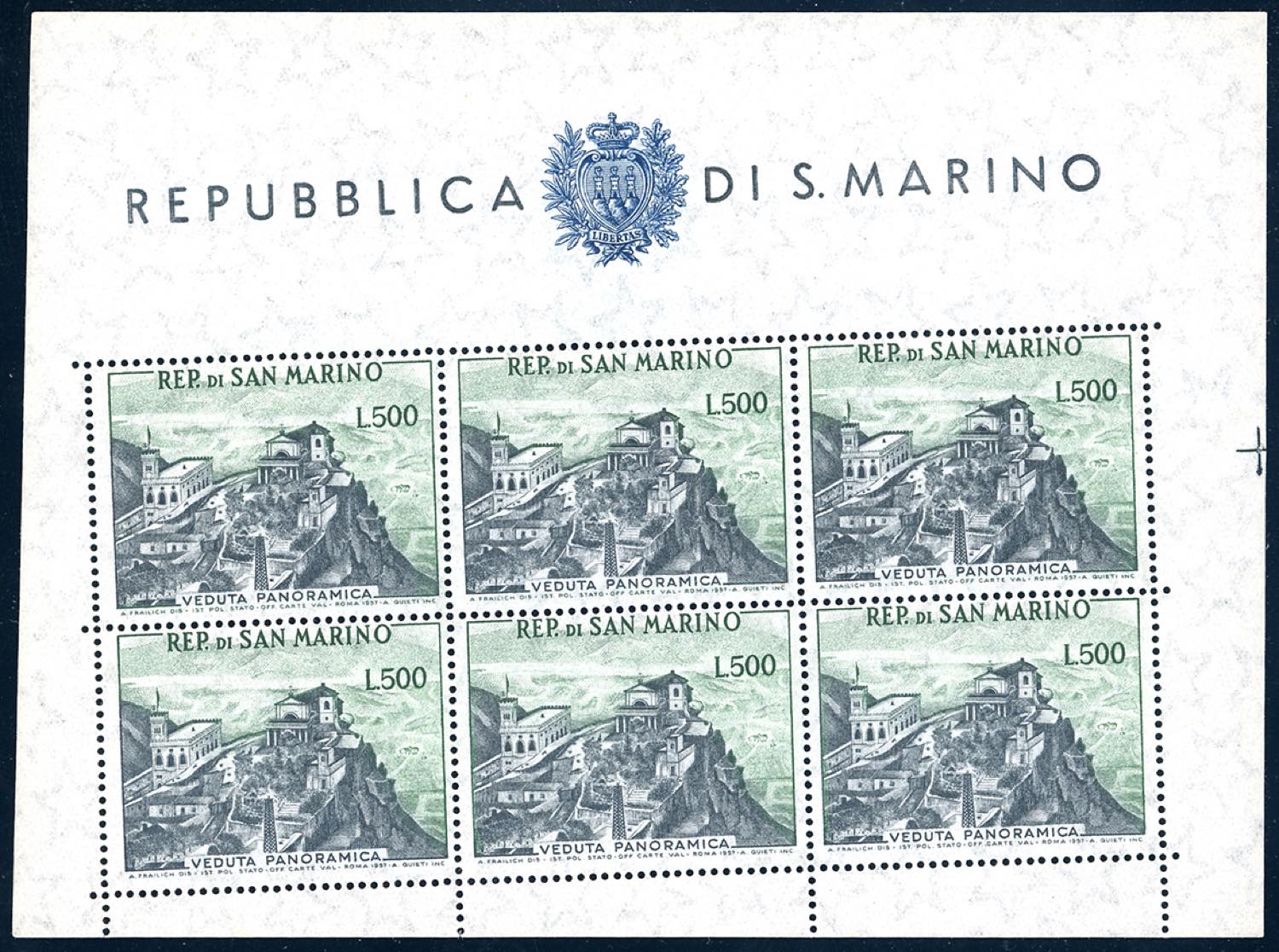 Lot 2954 - 1958 - 500 lire Panorama, foglietto, taglio verticale ...