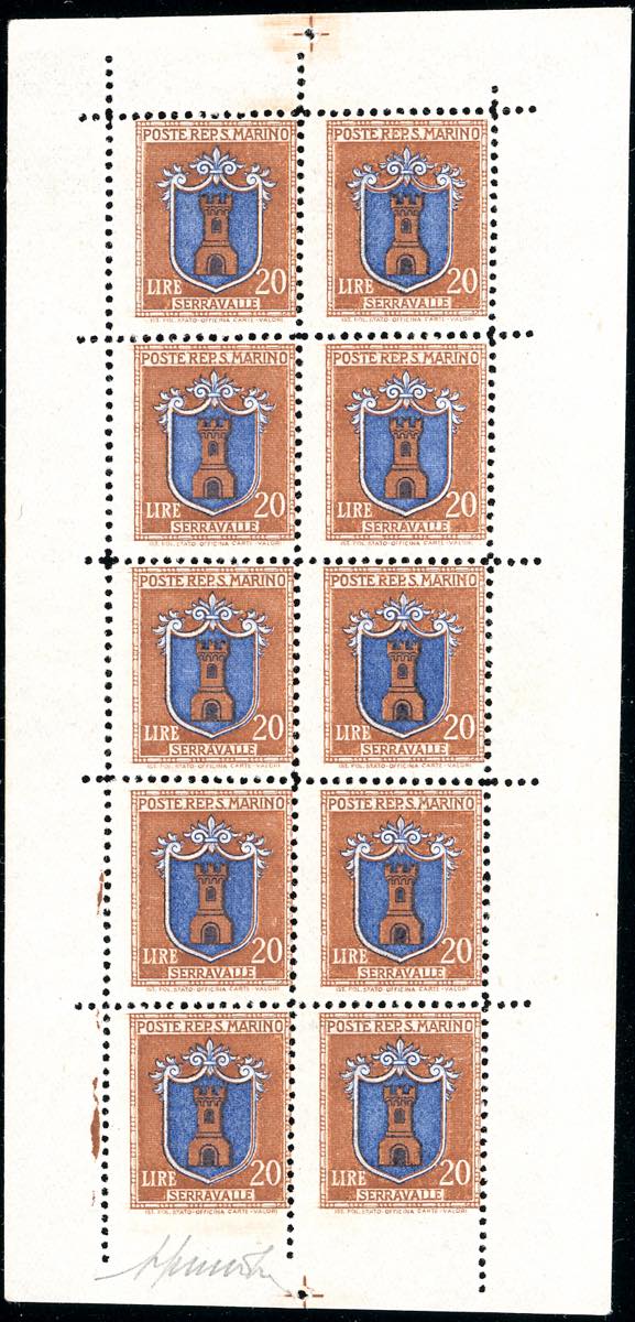 1946 - 20 lire Stemmi, minifoglio, non dentellato in basso (3), gomma originale integra, perfetto. Bella varietà, non catalogata! Cert. Raybaudi.