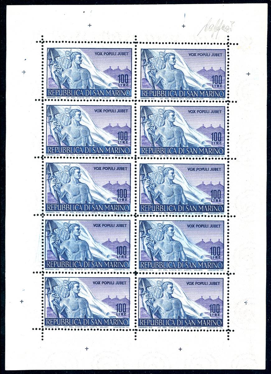 Lot 2973 - 1948 - 100 lire Lavoro, minifoglio (9), nuovo, gomma ...