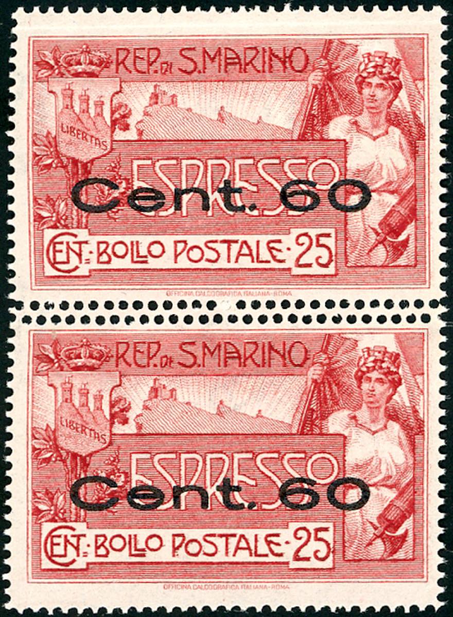Lot 2976 - 1923 - 60 cent. su 25 cent. Veduta, coppia verticale con ...